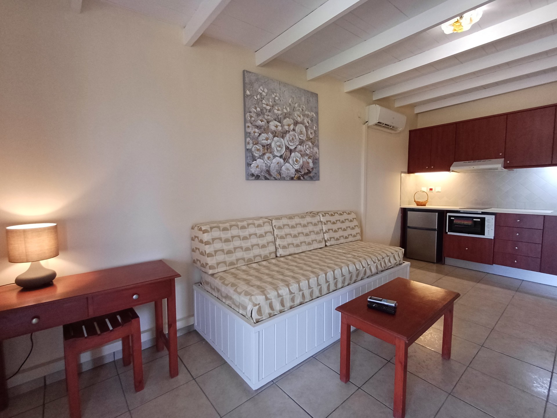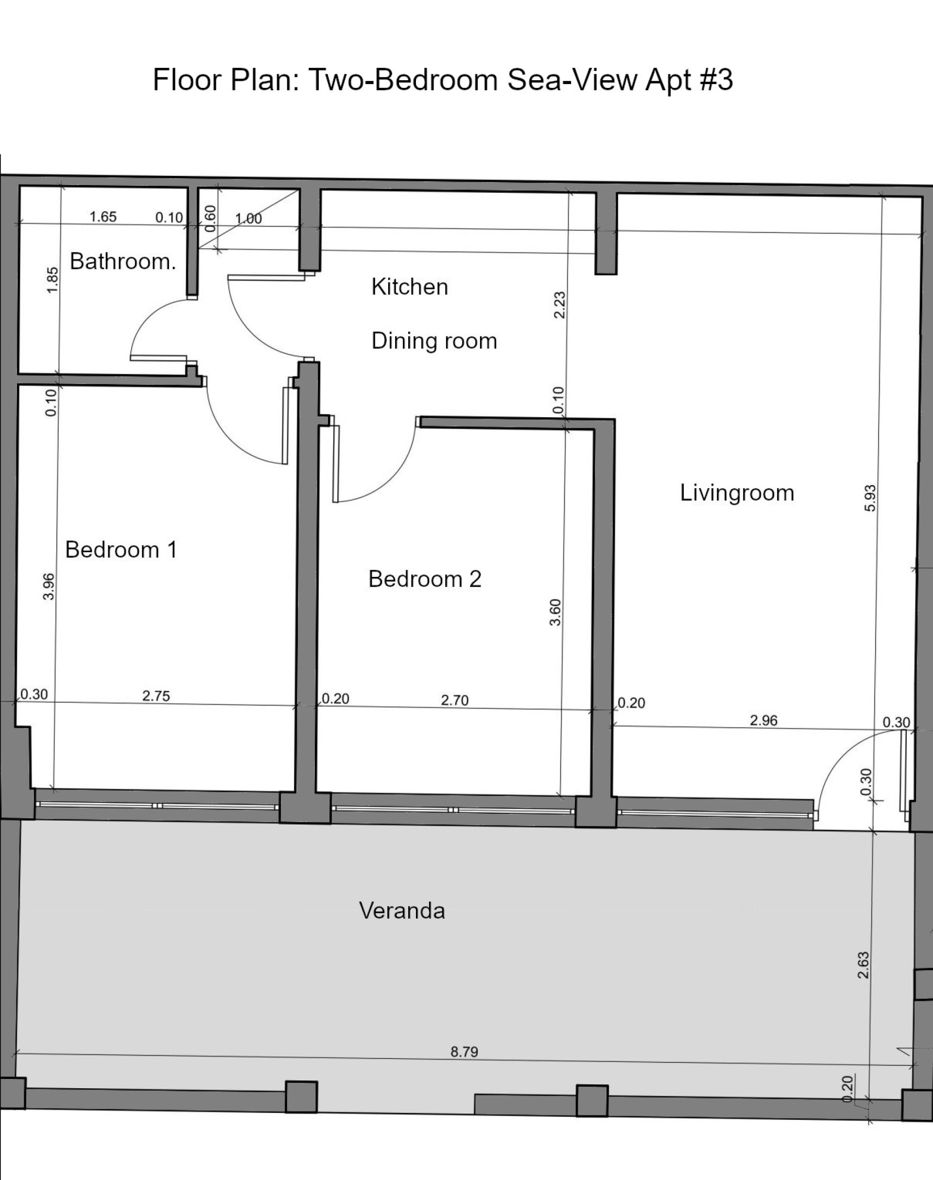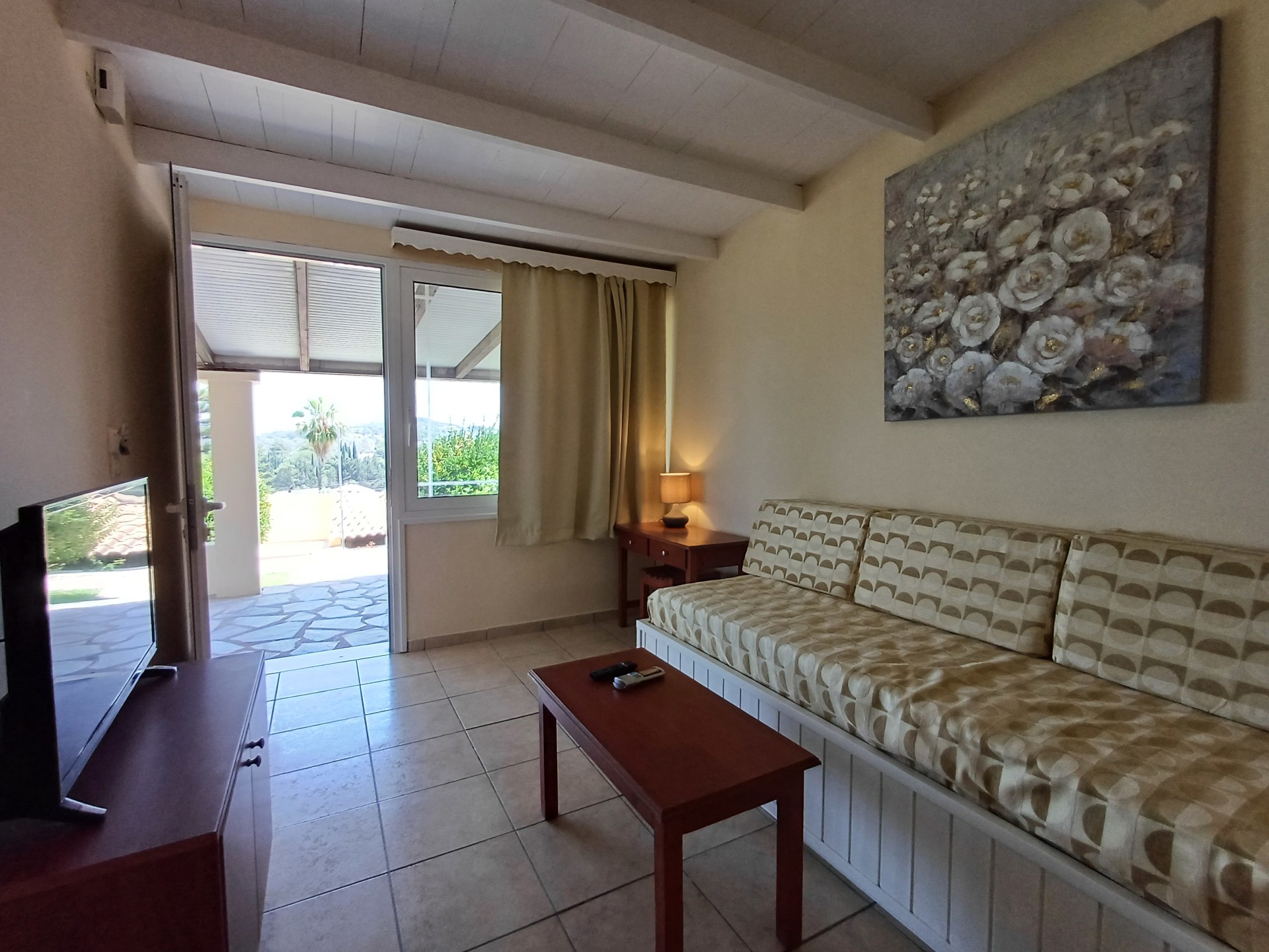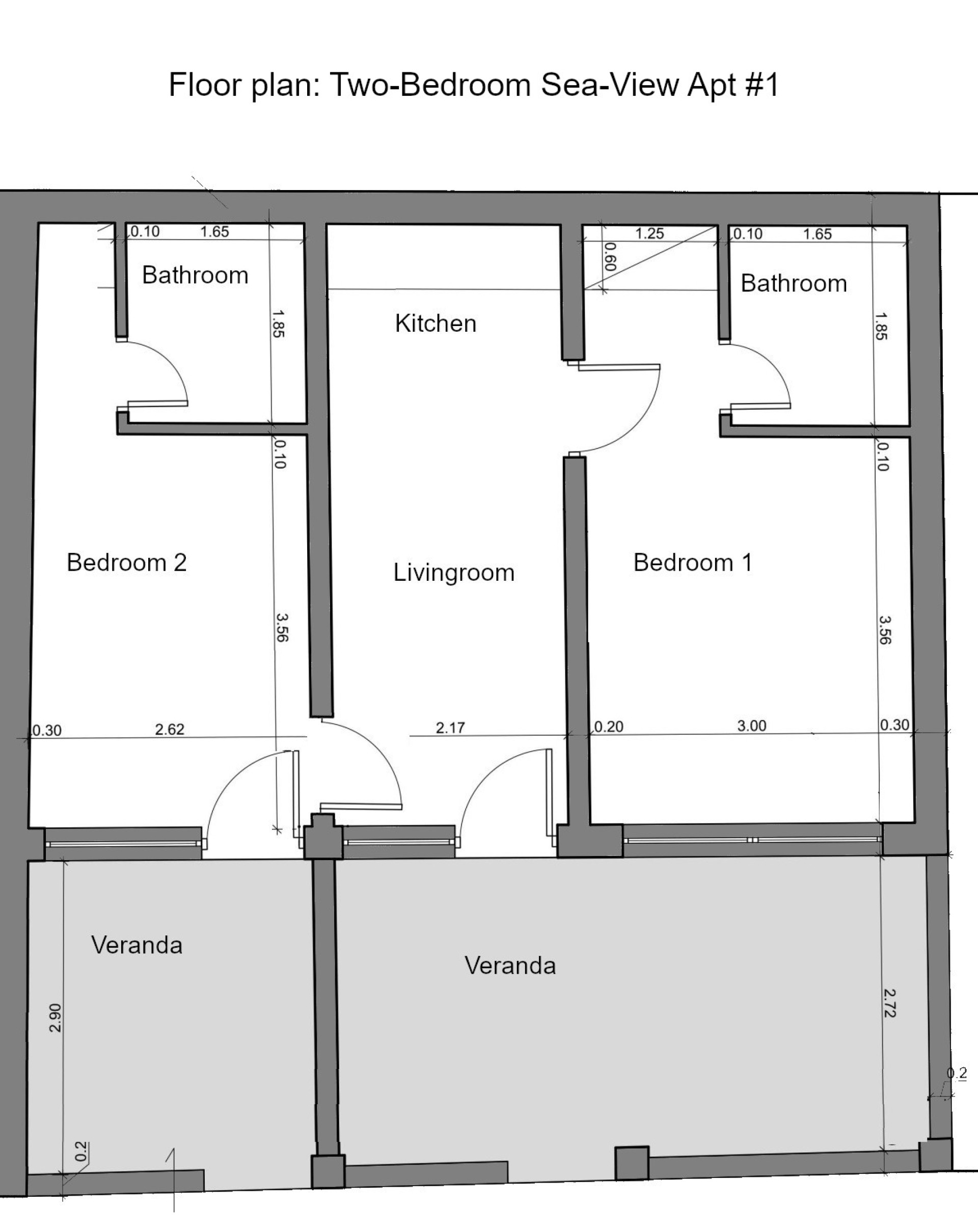 Τα Superior Two-bedroom διαμερίσματά μας μπορούν να φιλοξενήσουω έως και πέντε επισκέπτες. Βρίσκεται στο ισόγειο, με άμεση πρόσβαση στον κήπο. Δύο κρεβάτια βρίσκονται στο ένα υπνοδωμάτιο, άλλα δύο κρεβάτια βρίσκονται στο δεύτερο υπνοδωμάτιο και έχουν ένας ή δύο καναπέδες-κρεβάτια στο σαλόνι. Είναι πολύ ευρύχωρο, περίπου 55 τ.μ. Έχει υπέροχη θέα στη θάλασσα από τη βεράντα, τα υπνοδωμάτια και το σαλόνι. Η κουζίνα είναι εξοπλισμένη με επαγωγική εστία, φουρνάκι και μικρό ψυγείο με καταψύκτη. Η βεράντες είναι εξοπλισμένες με άνετα έπιπλα εξωτερικού χώρου.