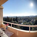 Our Mountain View +5 apartments sleep up to five guests. Three beds are in the bedroom and two sofa-beds in the living room. The rooms are spacious at about 45 sq. meters (485 sq, ft.). They have large balconies with views overlooking distant mountains and Gouvia Marina. The sliding windows lead to the balcony. Awnings and shutters offer shade when you need it.